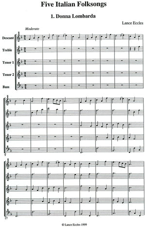 *Five Folksongs.* Approachable settings of Italian folk songs.