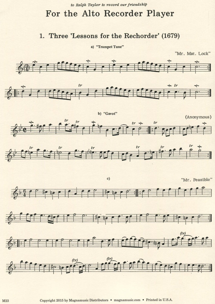 1. Mr Mat Lock, "Trumpet Tune"/Anon., "Gavot"/Mr Peasible