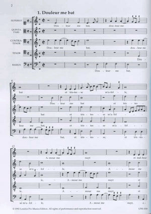 *Mediaeval Piece* scored for five voices or instruments. Includes introductory notes in German and English, lyrics for vocalists and translations of the text in French and English.