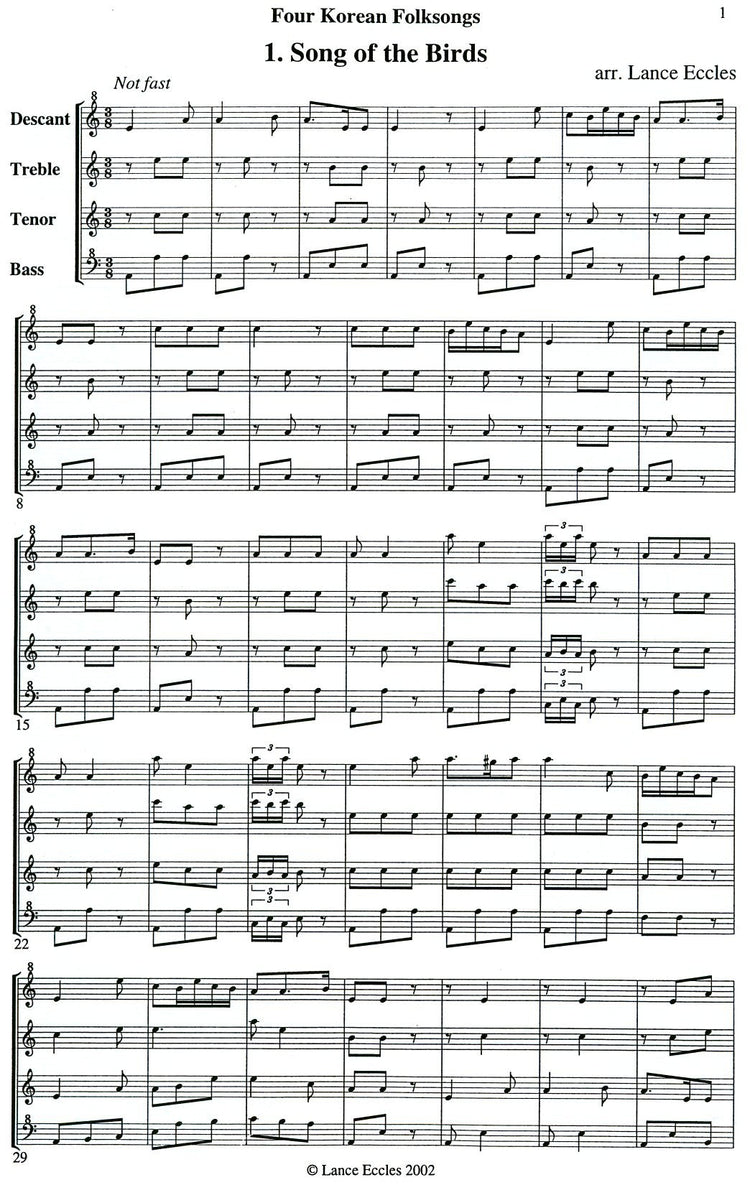 *Folksongs.* Lively and attractive oriental melodies in idiomatic arrangements. Descant part slightly more difficult than others.