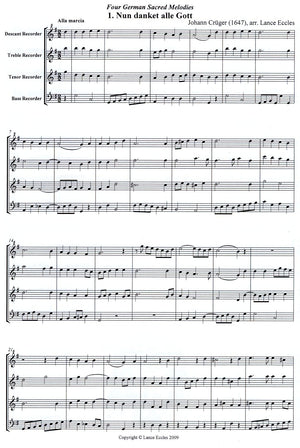 *Four Sacred Early German Peices* arranged for Recorder Quartet.