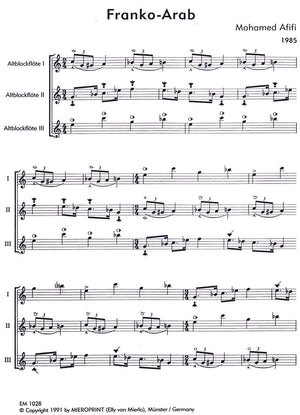 *Contemporary Recorder Trio* which makes much use of Avant Garde techniques. Includes notes and explanation of symbols in German.