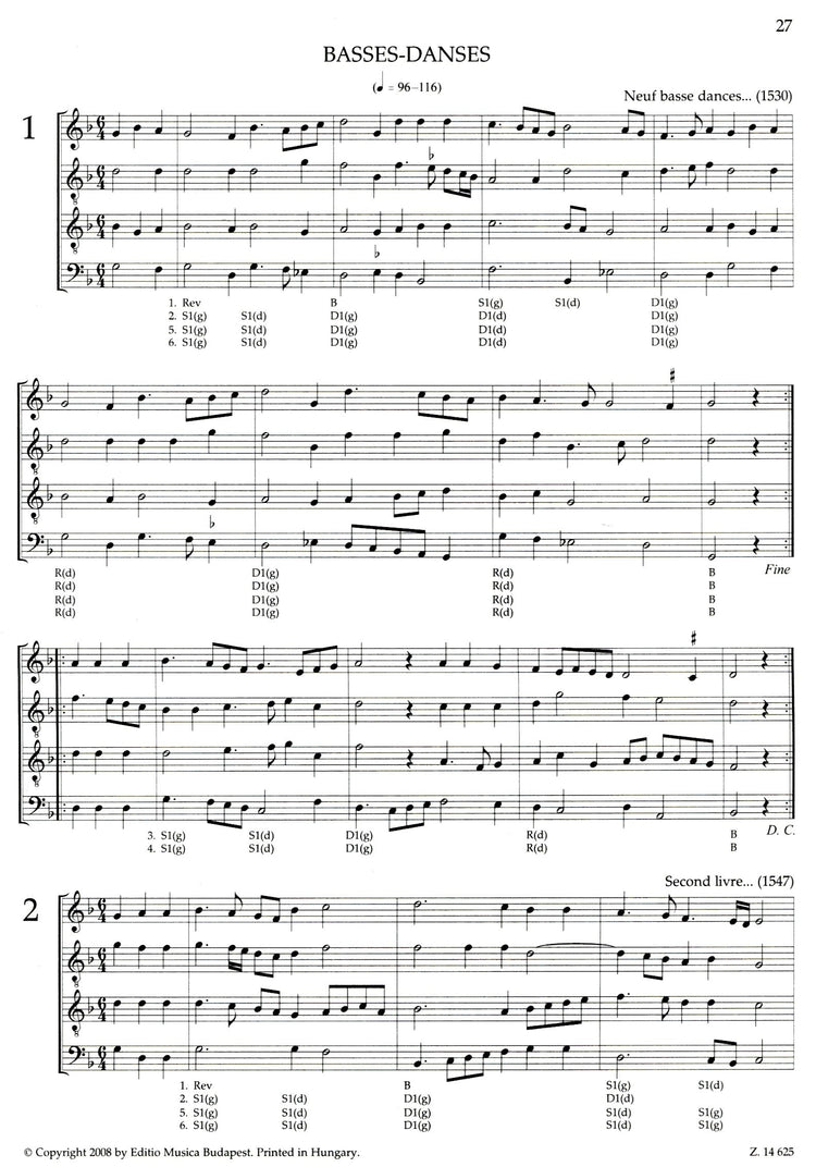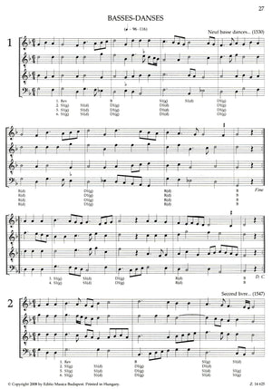 *46 Renaissance Dances.* A collection of French dances: Basses-danses, Tourdions, Branles doubles, Branles simples, Branles gays. Branles de Bourgogne, Pavanes, Gaillardes.