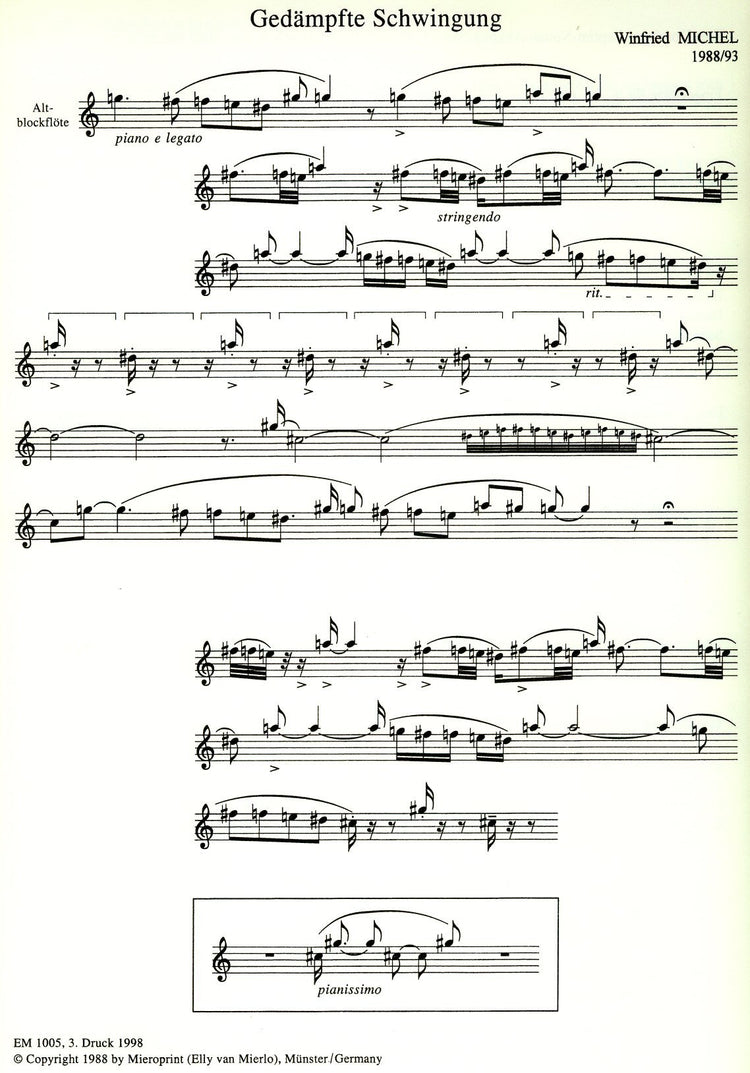 *Contemporary Piece*. Employs avant-garde techniques and contemporary notation. Includes playing instructions.