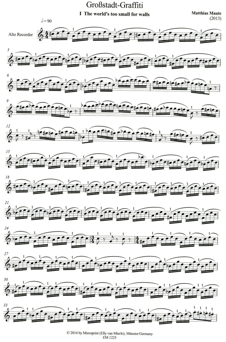*Four Tricky* contemporary works for solo treble recorder.