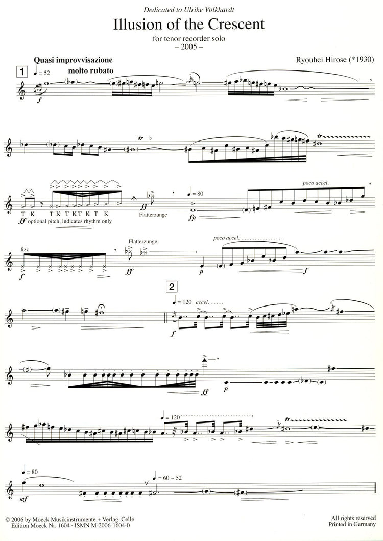 Composer Ryouhei Hirose was born in Hokkaido, Japan in 1830 and studied composition at Tokyo University of Fine Arts and Music with Tomojiro Ikenouchi and Akio Yashiro. His works include instrumental, choral and electronic compositions as well as pieces for Renaissance or traditional Japanese instruments. Hirose has been awarded numerous prizes in both Japan and abroad.