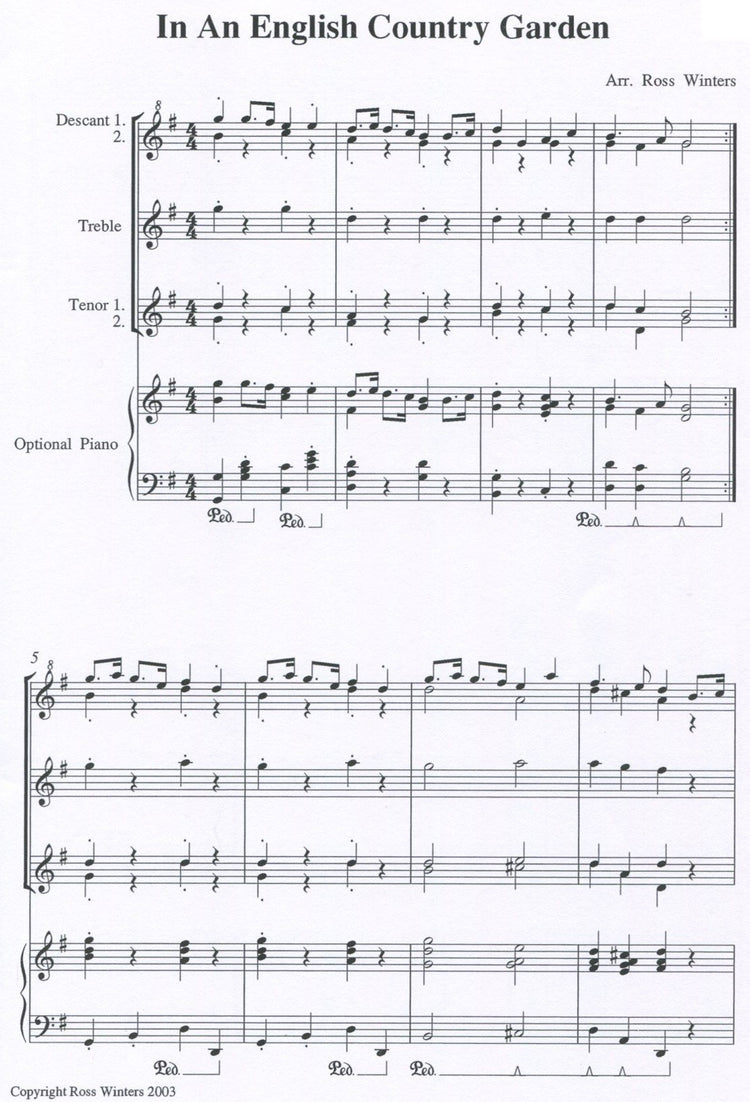 Instrumentation: 2 Descants - Treble - 2 Tenors + optional Piano