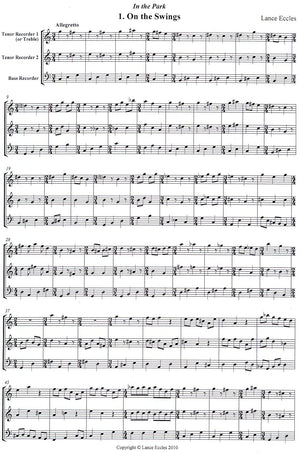 This is an entertaining suite in three movements whose titles are On the Swings', Two Old Ladies' and Ball Games'. The composer has laid out his music for two tenors and a bass. However, it is