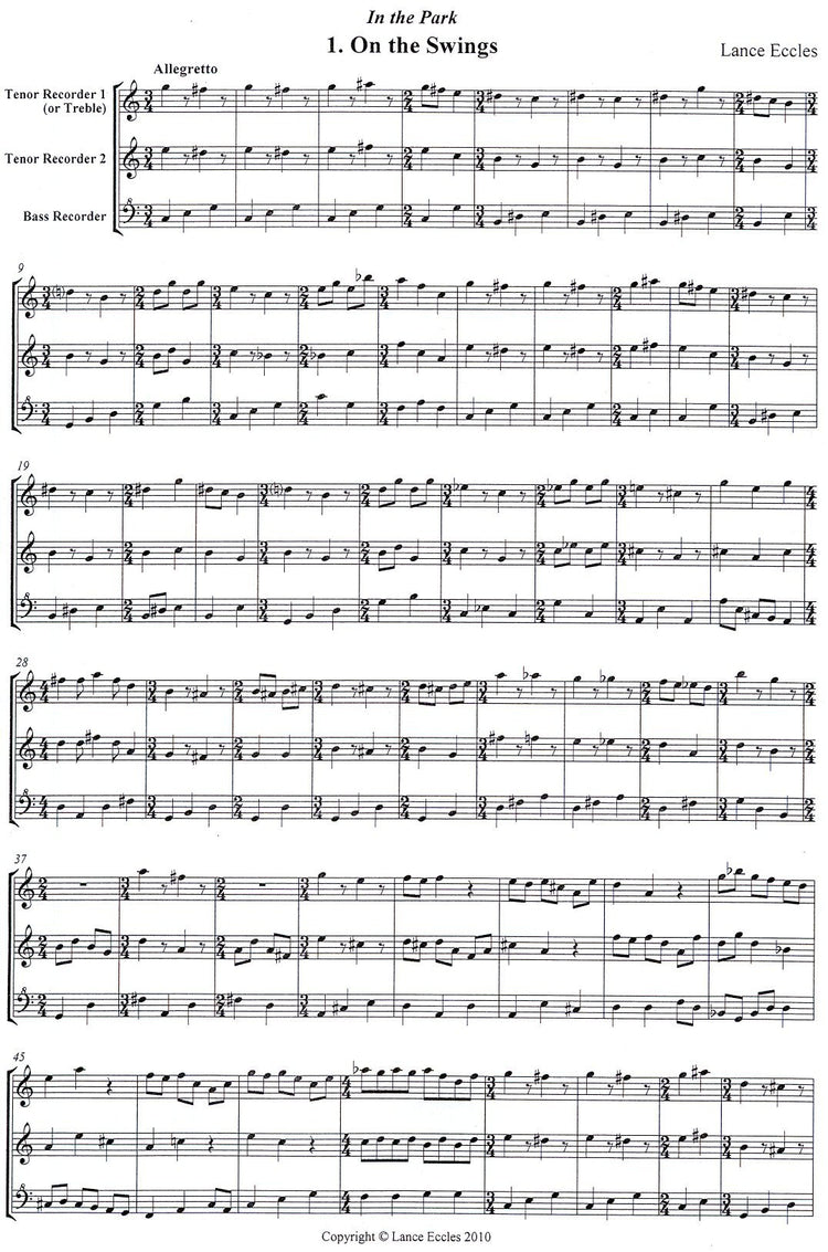 this again has some interplay with time signatures. This is a rewarding work for study and practice, and a worthwhile addition to the tenor and bass recorder repertory. The music is suitable for solo players or for small or larger groups.