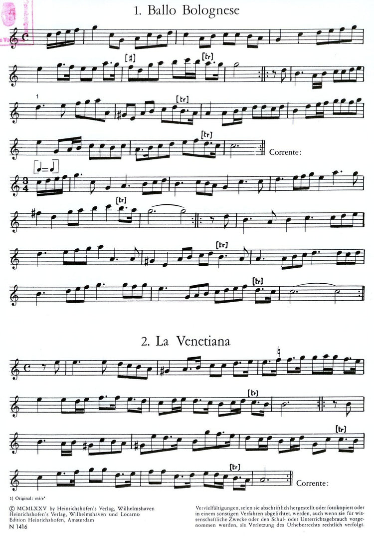 The dances here were evidently written by an amateur music-maker or dancing master. They may be performed on soprano or tenor recorders. These compositions serve to enlighten us on the extensive repertoire of instrumental dances constituting part of the Italian Baroque literature, a field that still requires to be penetrated thoroughly. Giorgio Pacchioni