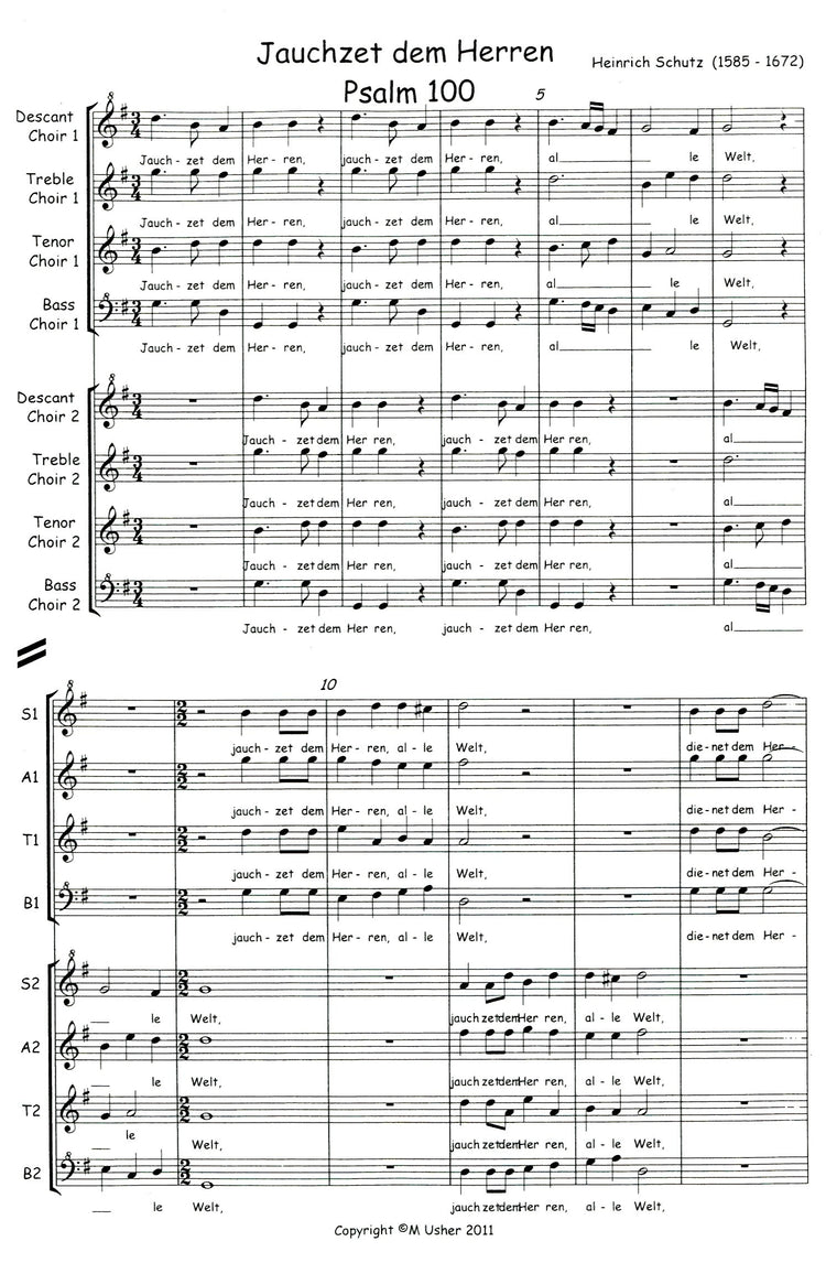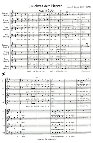 *Renaissance Psalm* set for two SATB recorder quartets.