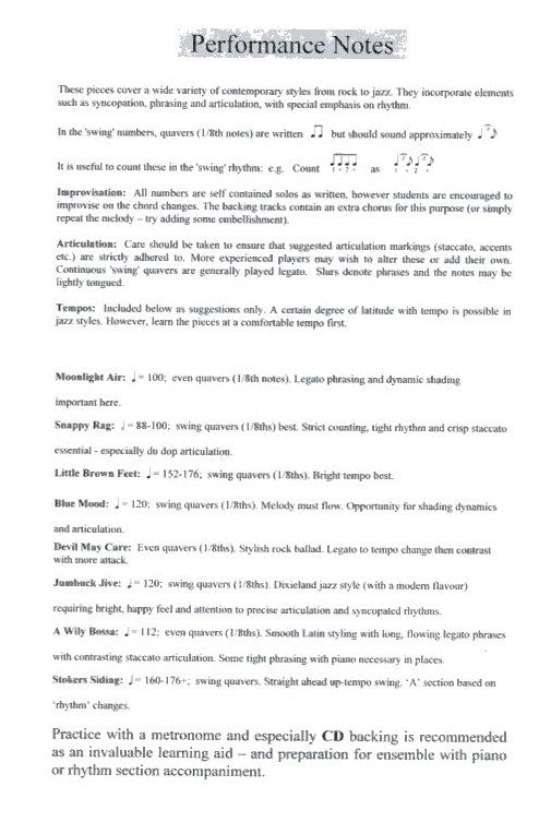 *Eight Original Jazz Pieces* with piano accompaniment and chord symbols. This edition comes with CD.
