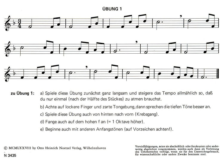 *15 Exercises* for treble recorder. Foreword and explanatory notes in German only.