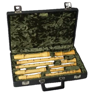 Sopranino, Descant, Treble and Tenor recorder hard case made from wood. Covered in vinyl, plush lined.