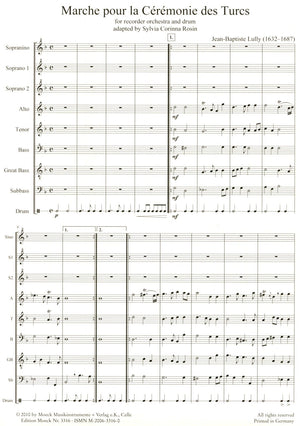 *Baroque March* arranged for Recorder Orchestra and Drum. Includes extensive introductory notes in French, German and English.