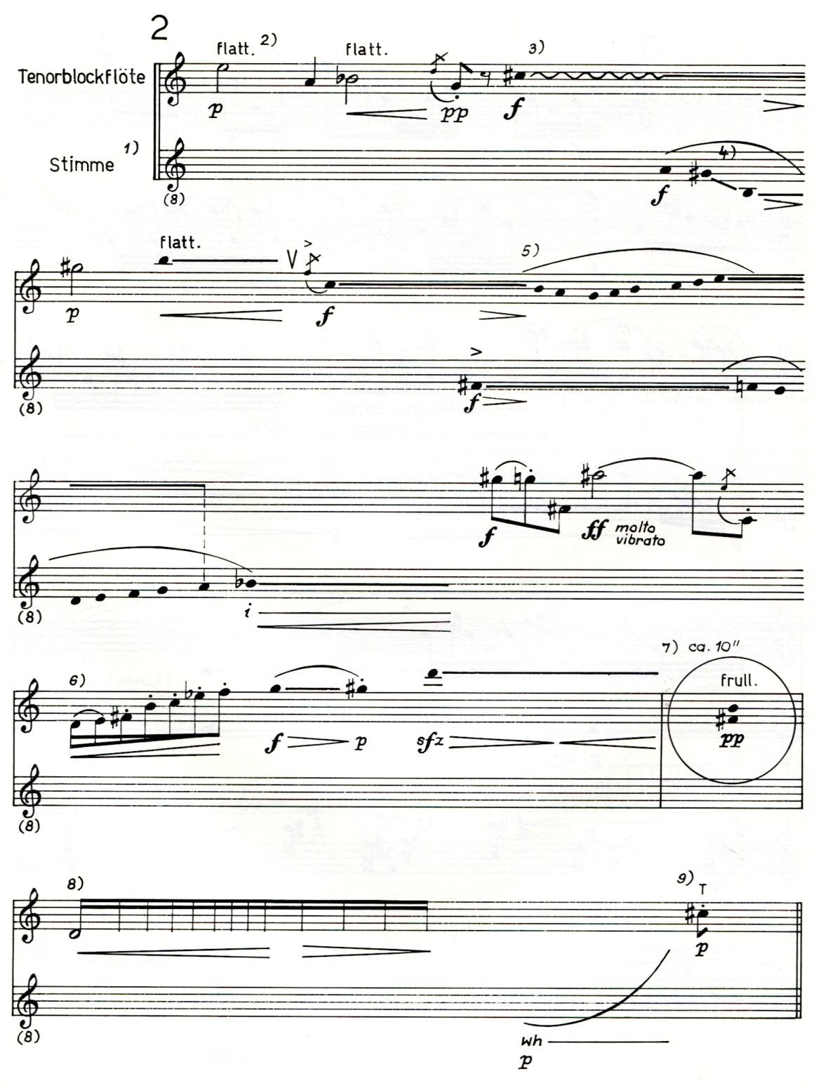 *Contemporary Composition* with seven unnamed movements. Features 20th Century techniques such as multiphonics, falling pitch, finger vibrato, tongue vibrato etc. Specific performance directions included.