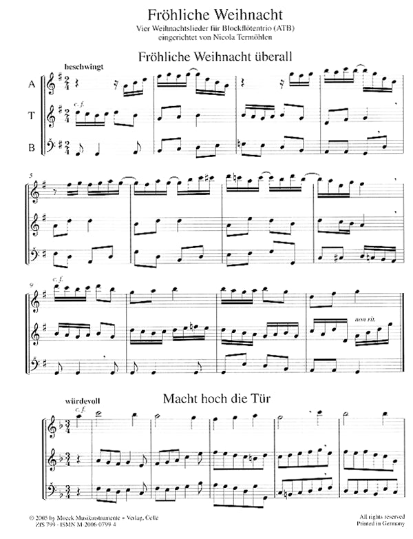 *Four German Traditional Christmas Carols.* Includes preface and biography of arranger.