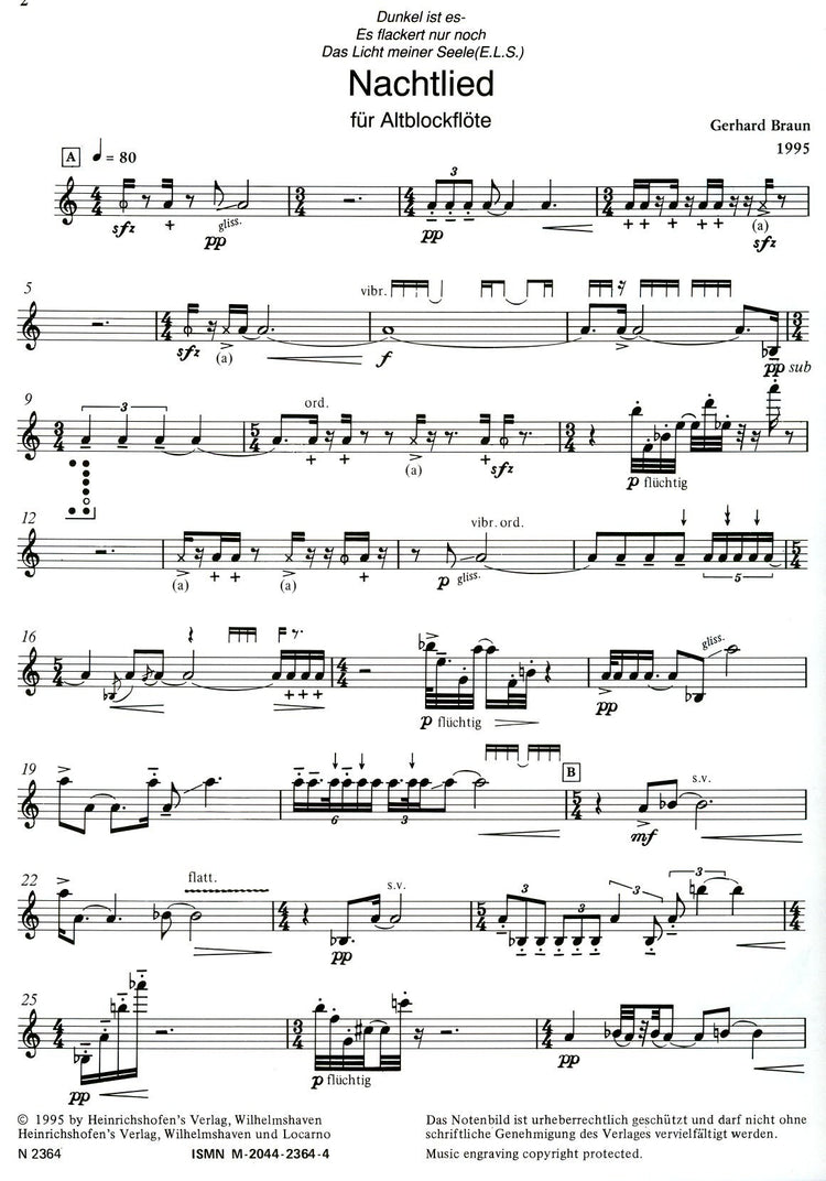 *Contemporary Piece.* Using avant garde techniques including alternative fingering, finger vibrato, difficult rhythmic work.