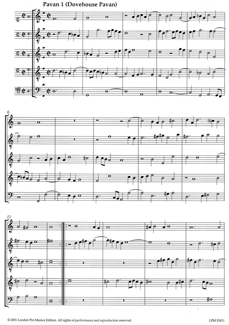 From the collection of English Instrumental Music c. 1600, this is standard Renaissance consort music with a traditional rhythmic style combined with bold harmonic language. Pavan 4 has text for the top part allowing for the possibility of adding soprano voice. Introductory, performance and editorial notes included.