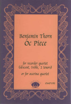 Oc Piece by Benjamin Thorn is the final quartet in this group. I was interested in this, as I play the ocarina myself, but unfortunately I couldn’t get three others to try it through on ocarinas with me! (Also, it must have been written for Donati' style ocarinas as the ranges were wrong for Langley' ocarinas.) However, although I can imagine the sound that a group of ocarinas would produce with this piece, I had to make do with recorders, which have more attack and do not have the softer, rounder sound of the ocarina. The four movements of ?? Piece, have no titles, but the first is described as 'funky. It is syncopated, with bar lengths changing frequently, but has a cantabile section in the middle. The second movement is a gentle, flowing piece in 9/8. Here both the descant and treble are quite high in their register, but this did not make the movement sound unpleasant. The third movement (tempo di minuetto starts with a duet between tenor 1 and tenor 2, and is very attractive and not difficult. The final movement starts with a free cadenza-like opening accompanied by both tenors, which leads in to a fast rhythmic jig which gives a good end to the whole set of pieces. 'Oc Piece' is very approachable and not as challenging as the three Eccles quartets. It is worth playing even if you haven't got an ocarina!