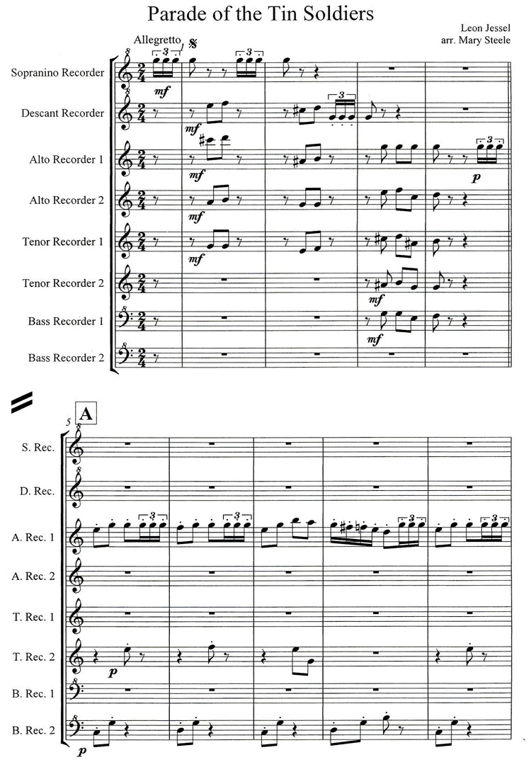 *The Parade of the Tin Soldiers (Die Parade der Zinnsoldaten)* edited by Mary Steele for recorders. An instrumental musical character piece in the form of a popular jaunty march, written by German composer Leon Jessel in 1897.