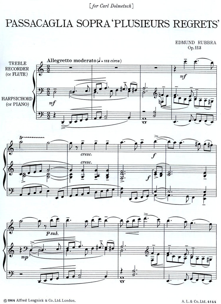 Passacaglia Sopra "Plusieurs Regrets" Op 113