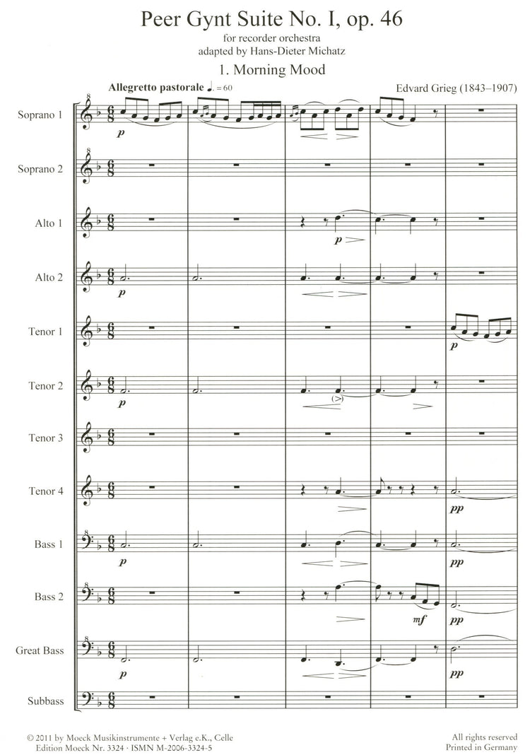 *Grieg's Well Known Orchestra Suite* arranged for recorder orchestra.