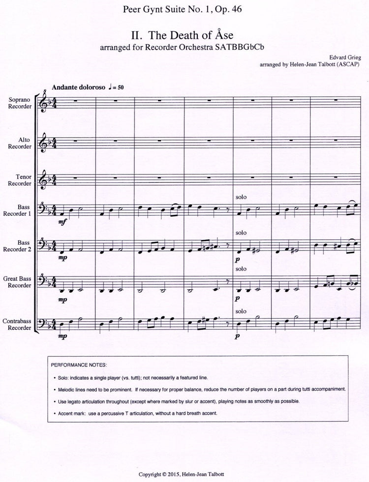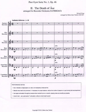 *Famous Movement from Peer Gynt Suite* arranged for Recorder Orchestra.