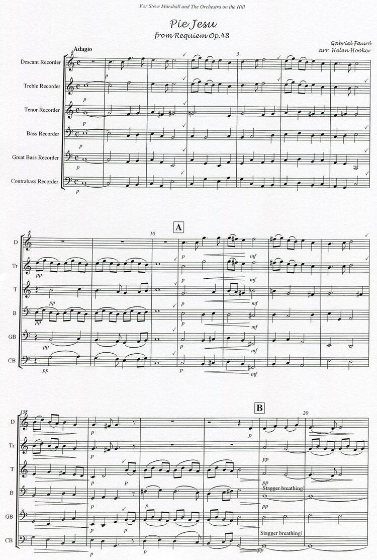 *Transcription of Faure's Pie Jesu* for recorder sextet. This arrangement by Helen hooker is dedicated to Steve Marshall and The Orchestra on the Hill.