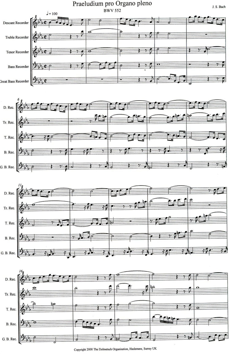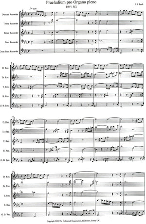 *Famous Bach Composition* arranged for SATBGb recorder choir.