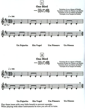 *Suzuki Volume 1 for Descant Recorder.* *The Suzuki Method* is renowned world-wide as an innovative approach to teaching instrumental performance. The theory is that we learn to speak a language before we are able to read and write it. This approach has been adapted to the language of music. Students are encouraged to play by listening and many Suzuki students have an exceptional aural capacity.