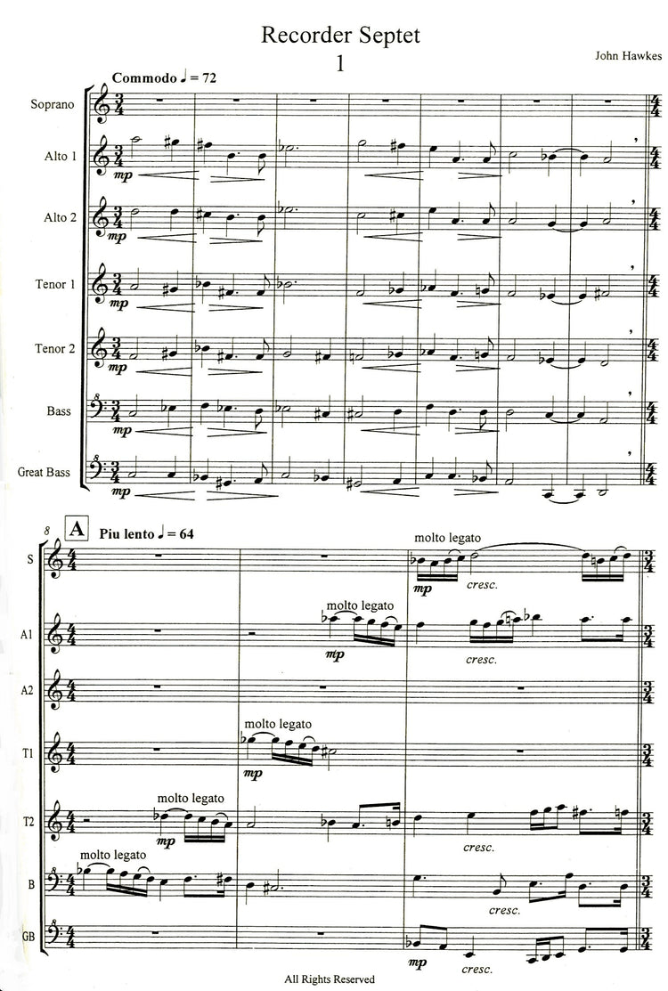 Instrumentation: Descant - 2 Trebles - 2 Tenors - Bass - Greatbass