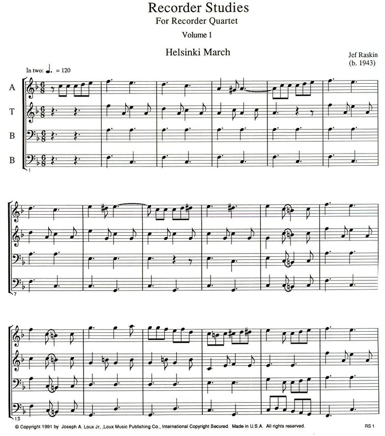 *Four Studies for Recorder Quartet*. Written to provide recorder groups with varied and enjoyable pieces which at the same time assist in building ensemble performance technique.