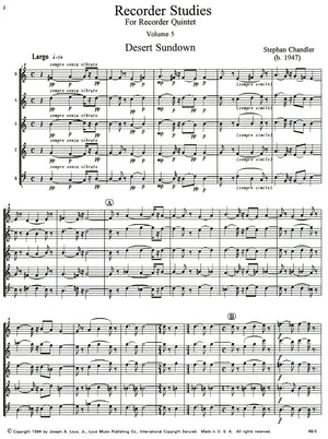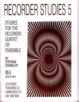 *Three Studies for Recorder Quintet*. These interesting pieces are designed to improve aspects of ensemble performance including playing rapidly together, note lengths and polyrhytms. Contains performance instructions in English only.