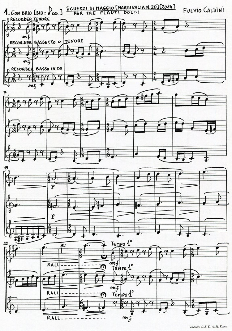 *Contemporary Recorder Trio*. Features much changing metre and chromaticism. Presented in neat composer autograph style. Includes biographical notes about the composer in English.
