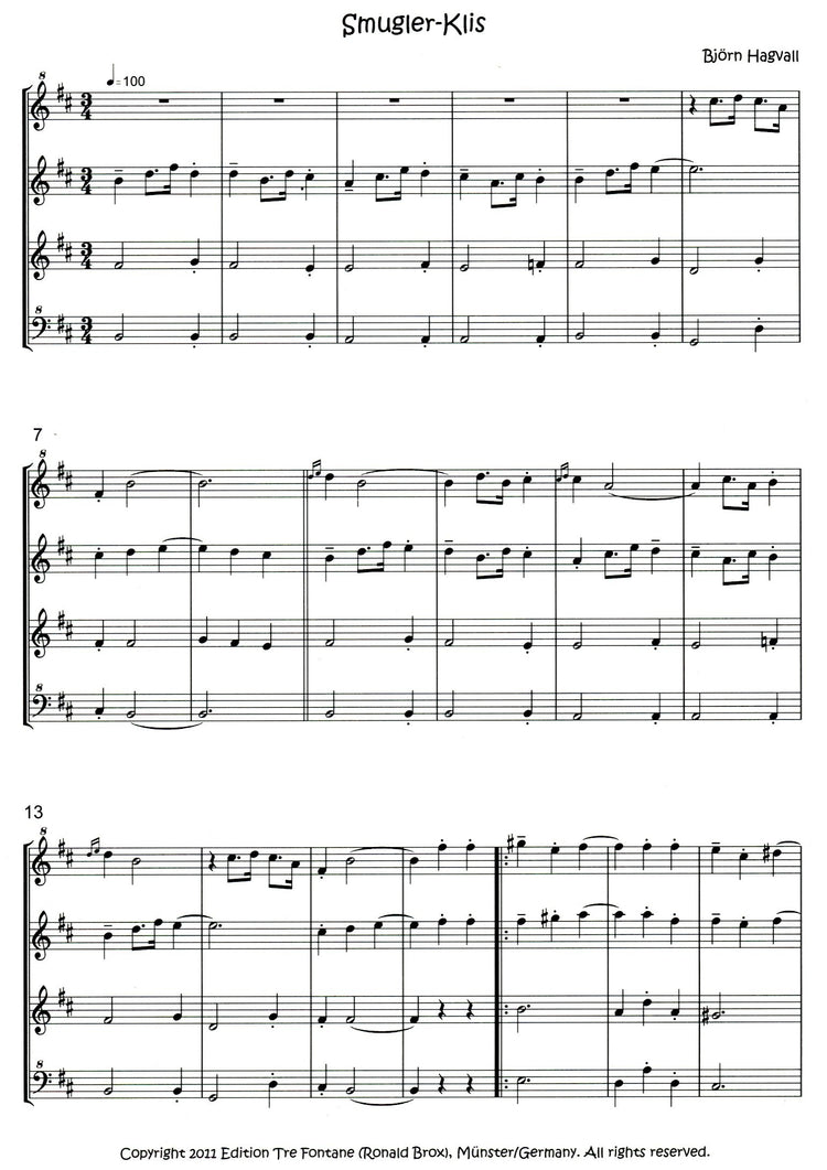 *Contemporary Suite* composed for recorder quartet. This edition includes introductory notes in Swedish and German.