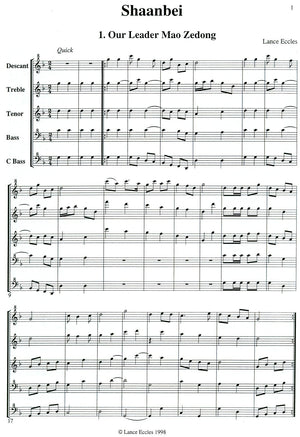 *Folksongs.* Four revolutionary folk songs from north west China. Interesting melodies and arrangements. Some use of quarter tines and inflexions.