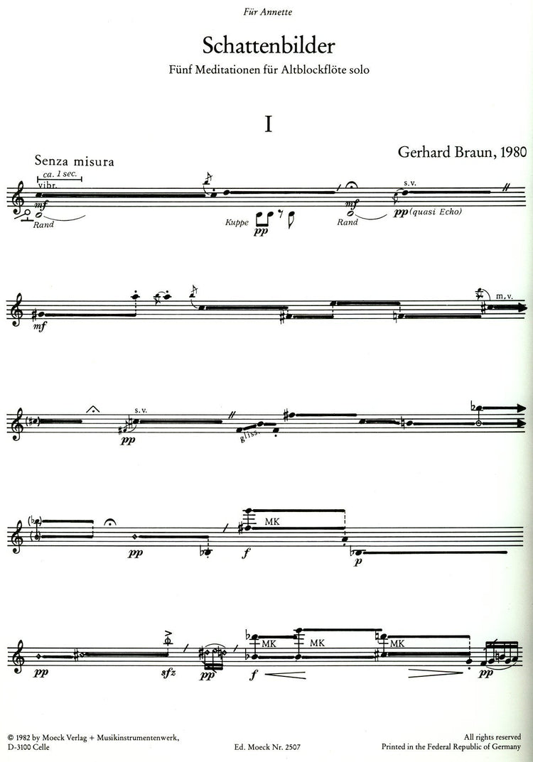 *Single contemporary piece* with 5 movements. Avant garde techniques used with technical guide in German.