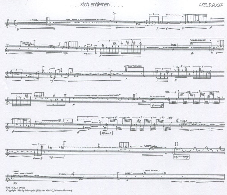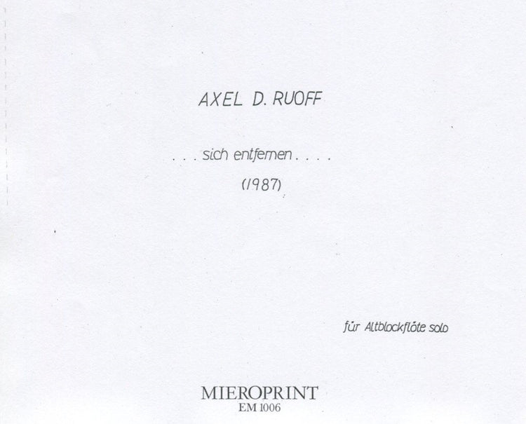 *Contemporary Composition* for Treble Recorder. Uses avant garde notation. Includes comprehensive performance instructions in German.