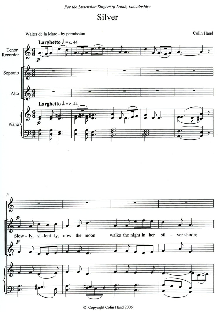 Instrumentation: Soprano + Alto Voices - Tenor Recorder + Piano