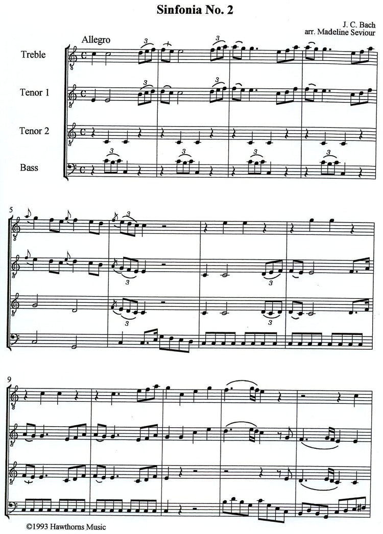 *Traditional Baroque Sinfonia* arranged for ATTB recorder ensemble.