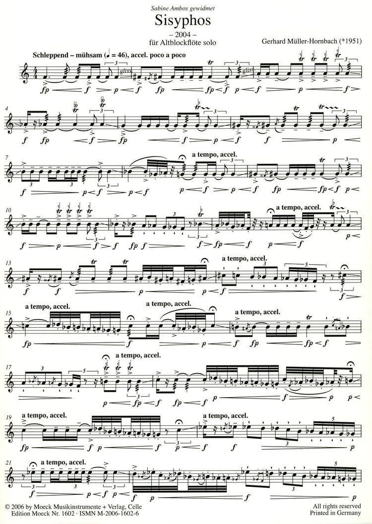 *Contemporary Composition.* Features much chromaticism, specific articulation and dynamic markings. Also includes performance notes and short composer biography.