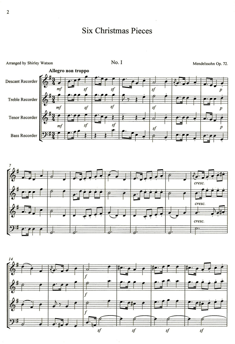*Mendelssohn's Christmas Pieces* arranged for recorder quartet.