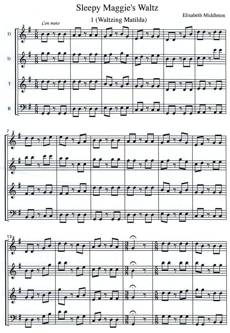 *Folksongs.* Fun versions of three Australian folksongs with some great rhythmic quirks. M