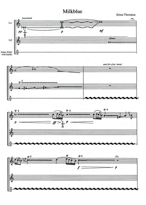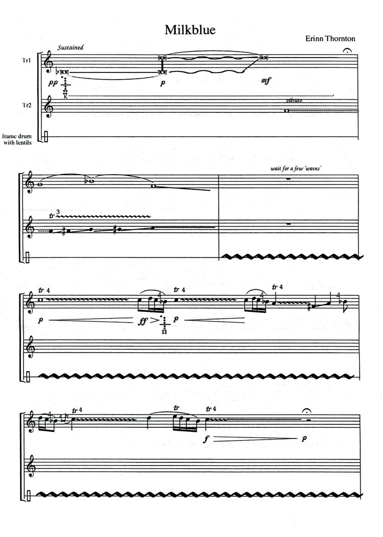 Beautiful atmospheric and timbral pieces. Some quarter tones and glissandi. Percussion parts largely improvised.