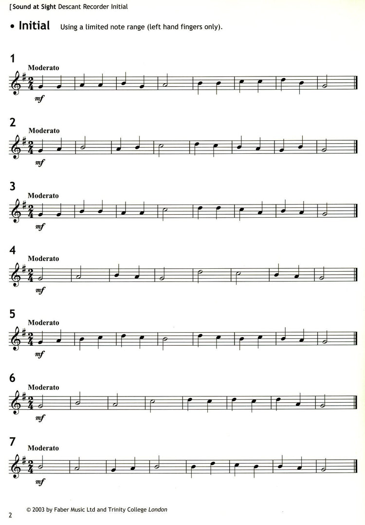 Sound at Sight: Sight Reading Pieces for Descant Recorder Initial- Grade 5