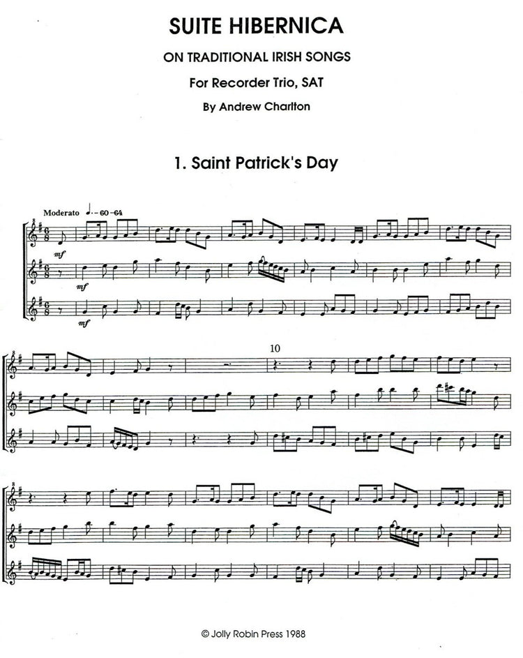 *Four Irish Folksongs* arranged for Recorder Trio.