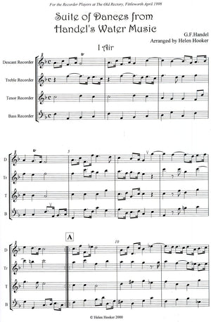 *Nine Movements* from Handel's famous Water Music arranged for six recorders.