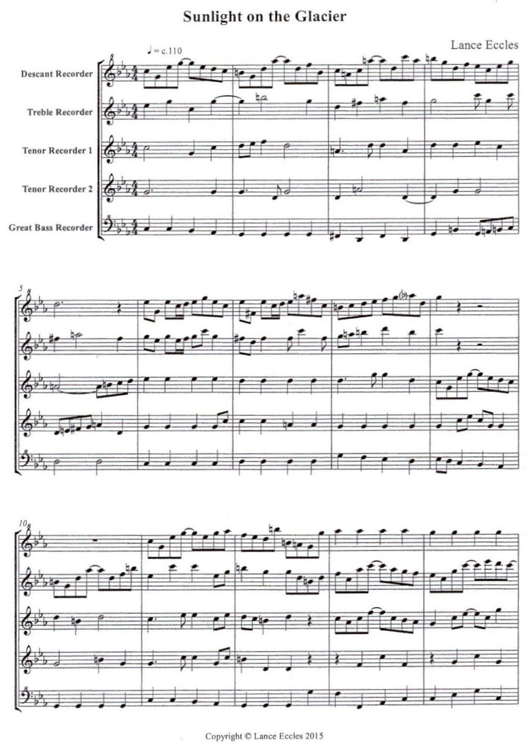 This contemporary piece by Lance Eccles creates the musical image of reflections of bright sunlight, using high chromatic lines in the soprano and alto against the acoustically low shimmering of chromatic lines in the great bass.