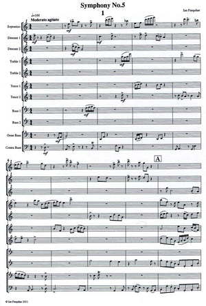 *Contemporary Symphony for Recorderr Orchestra* from 2011. Features introductory notes by the composer in English. Suitable for a good intermediate ensemble or advanced group.